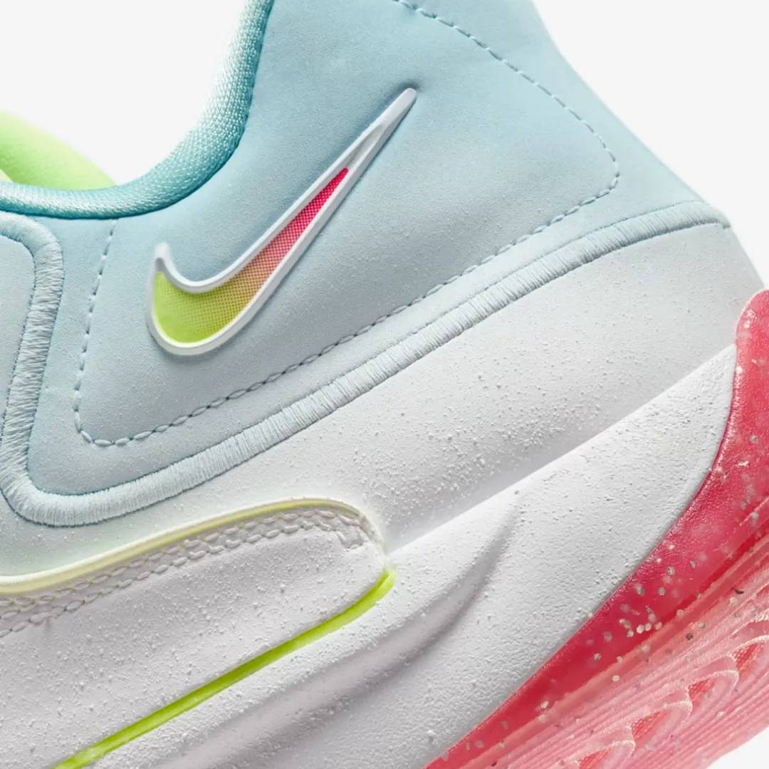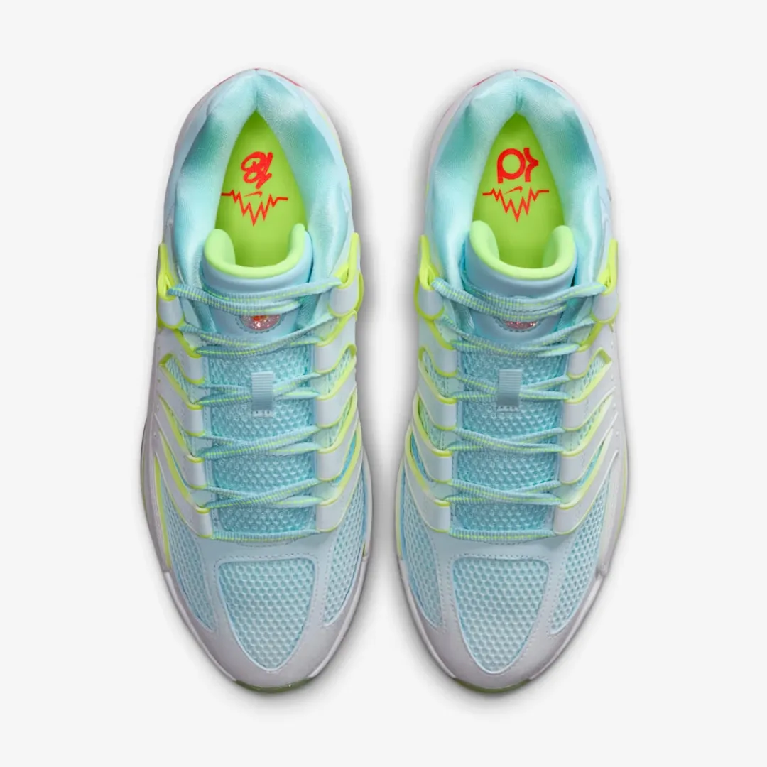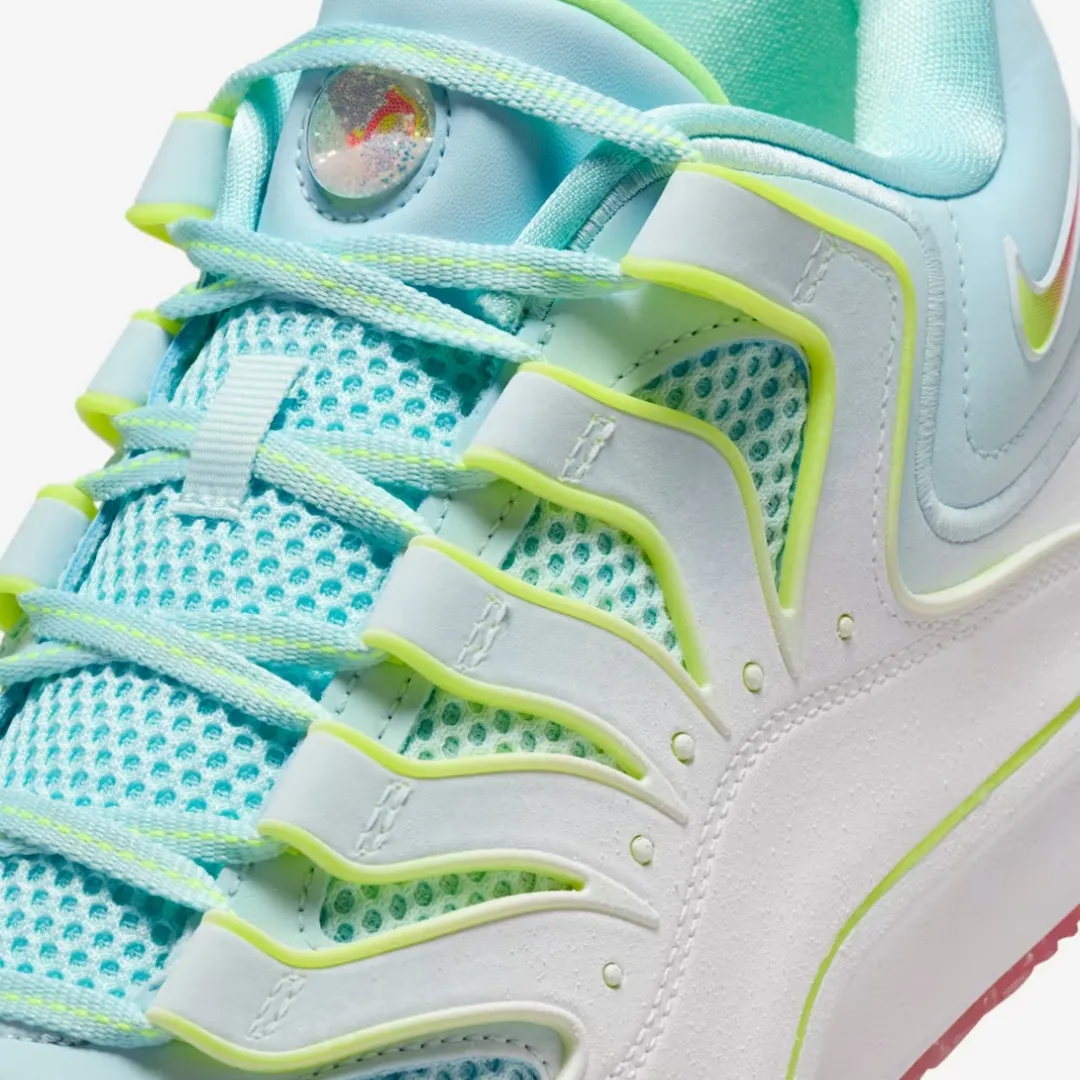 KD’s scoring binges come in storms of all sorts—blizzards included. This special KD18 brings some of that wintry energy with an iced outsole and signature logo on the tongue that’s encased in a plastic bubble filled with glitter, just a like a snow globe. And the flocked snow-flake upper print is just like KD’s buckets—no two are alike.With its extra-durable rubber outsole, this version gives you traction for outdoor courts.